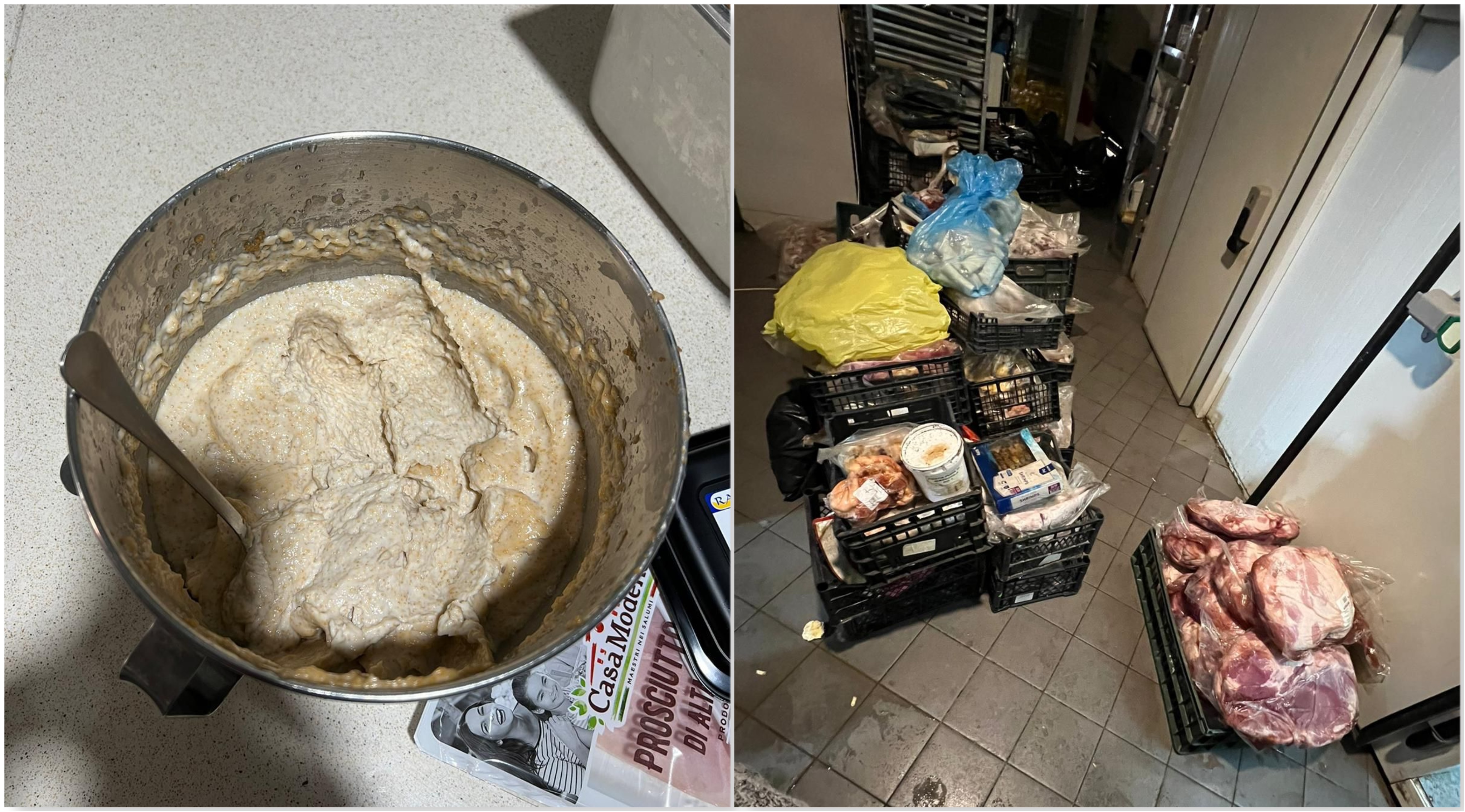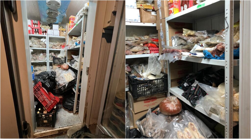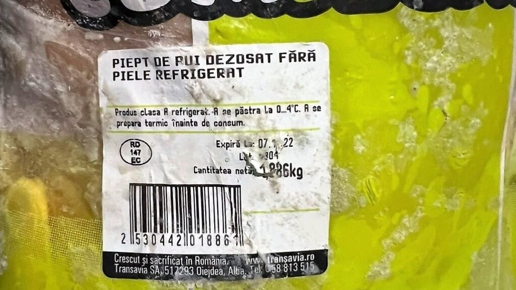 • produse alimentare fără elemente de identificare și caracterizare, ce au fost scoase din ambalajul original și reambalate de către operatorul economic fără a mai exista informaţii cu privire la data de valabilitate. Conform declarațiilor angajatului au fost achiziționate refrigerate și congelate în camera de congelare;