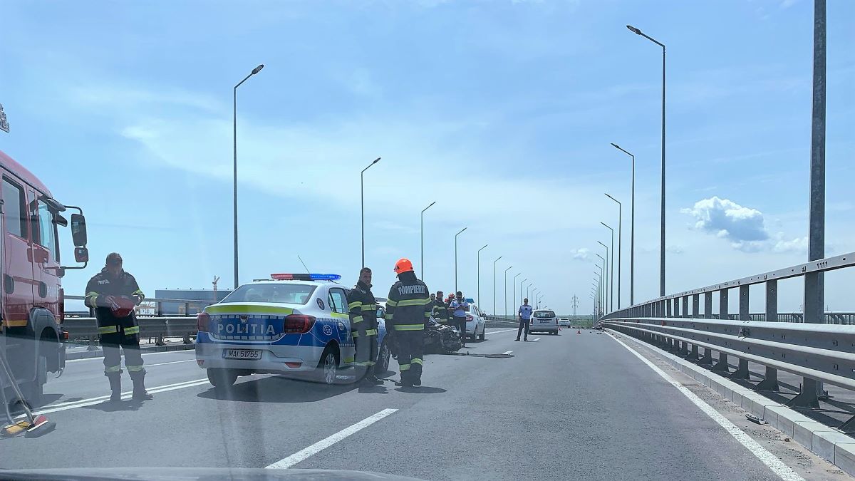 Șofer fără permis, rănit grav după ce a provocat un accident pe podul rutier de la 2 Mai. FOTO: Adrian Boioglu