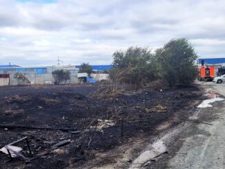 FOTO Intervenție a pompierilor constănțeni pentru stingerea unui puternic incendiu de vegetație uscată, izbucnit, sâmbătă, pe Varianta Ovidiu, în spatele unui centru comercial