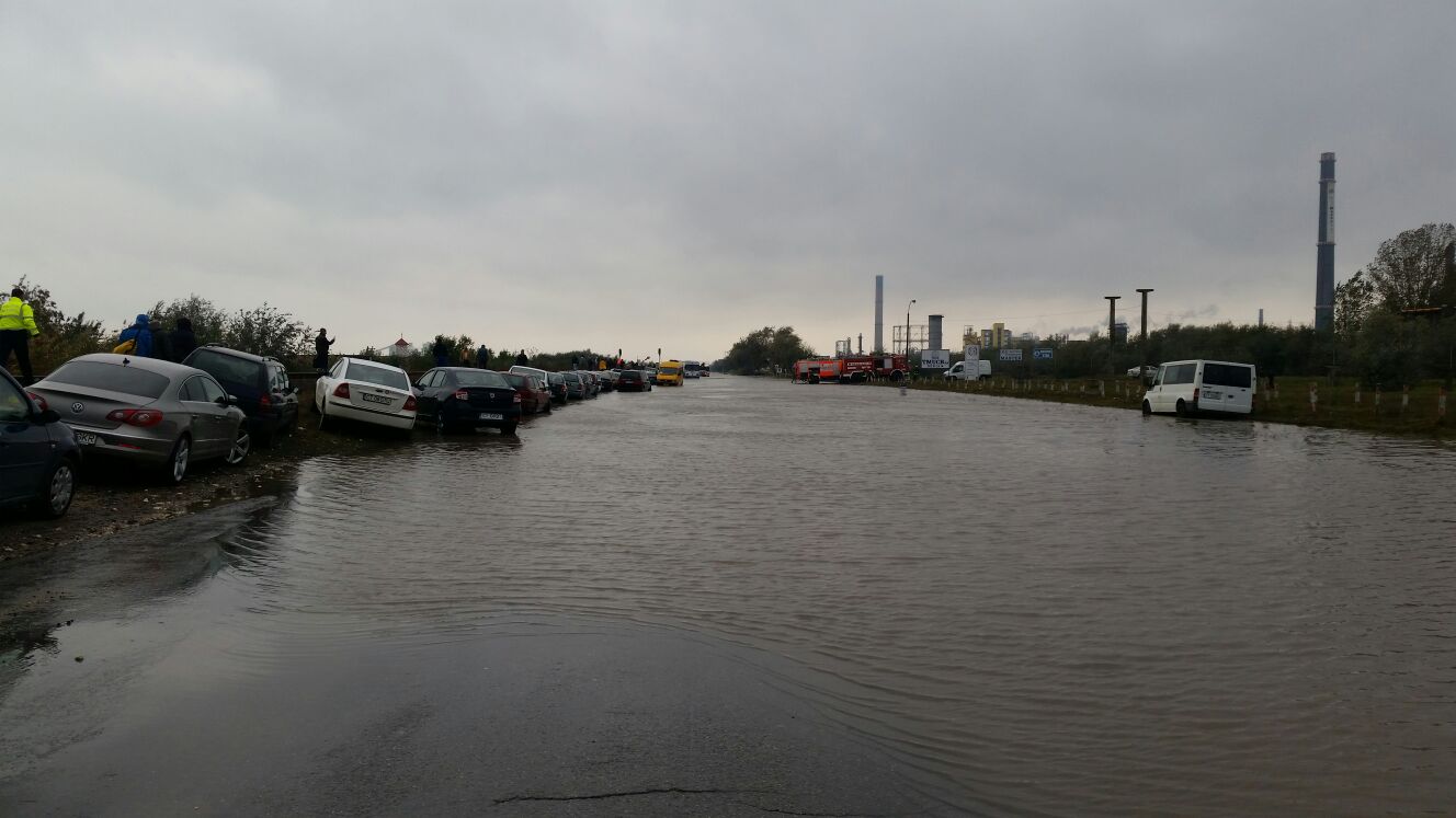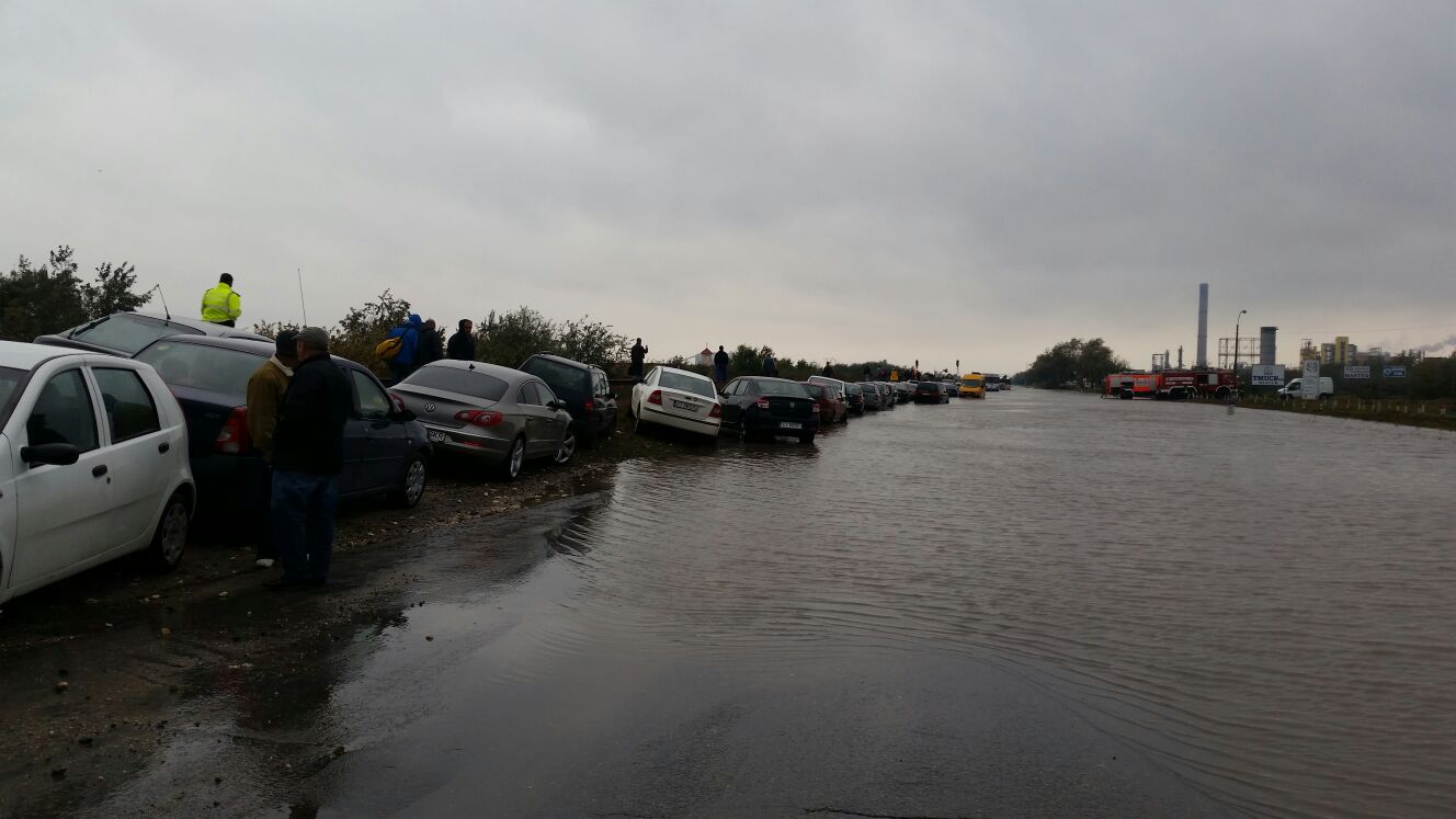 Stare de alertă după ploile din nord vestul județului Constanța. 20 de mașini au fost blocate pe Drumul Județean 226 între orașul Năvodari și comuna Corbu. Echipele de intervenție ale ISU Dobrogea au fost chemate pentru a-i salva pe oamenii blocați în autoturisme.