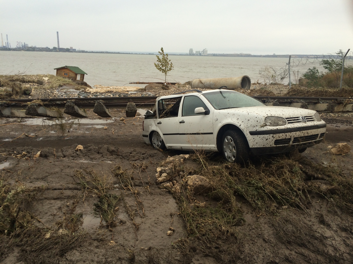 “Situație grea între Navodari și Corbu. Marea parcă s-a unit cu lacul Corbu. Mașini cu oameni plutesc în derivă, apa vine șuvoaie dinspre mare. Poliția Locală a salvat o mamă cu un copil mic.”